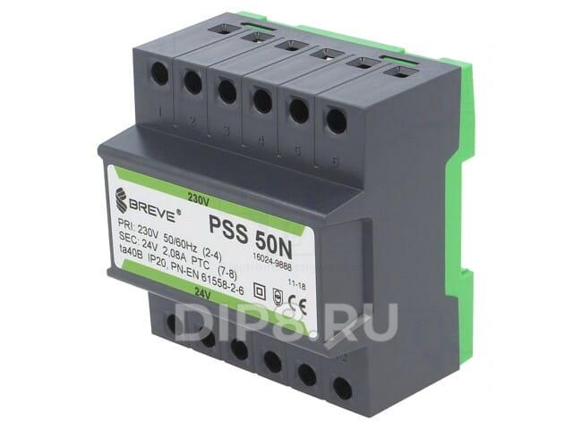 Трансформатор разделительный, 50ВА, 230ВAC, 24В, IP30, Монтаж DIN
