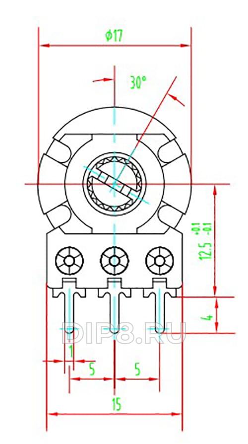 Потенциометр осевой, однооборотный, 10кОм, 125мВт, ±20%, THT, 6мм