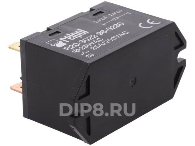Реле электромагнитное, DPST-NO, Uобмотки 230ВAC, 25А, 25A/250ВAC