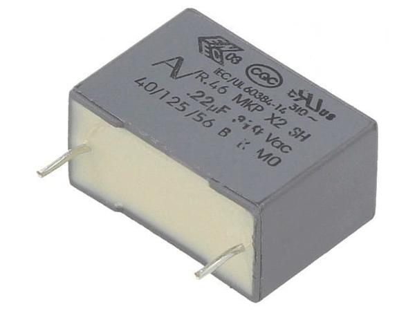 Конденсатор: полипропиленовый, Х2, 0,22мкФ, 15мм, ±20%, -40-125°C