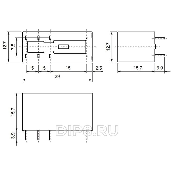 Реле: электромагнитное, DPDT, Uобмотки: 5ВDC, 8A/250ВAC, 8A/24ВDC