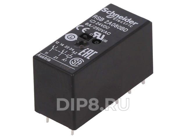 Реле: электромагнитное, DPDT, Uобмотки: 24ВDC, 8A/250ВAC, 8A/28ВDC
