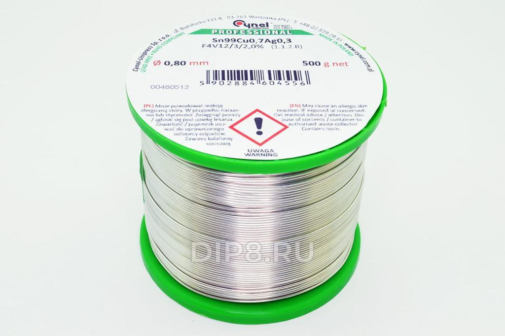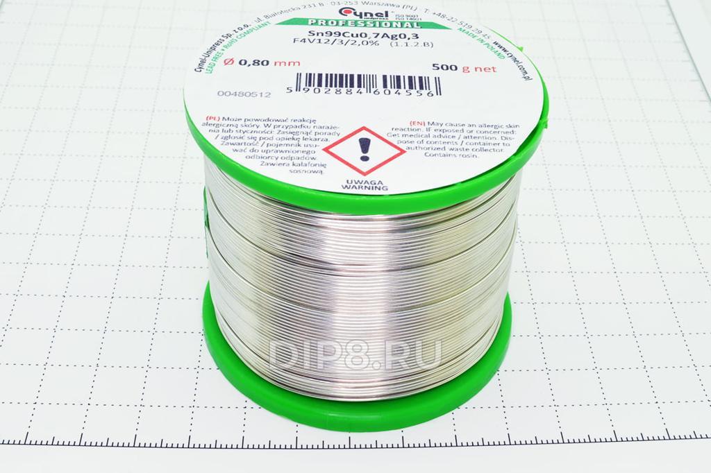 Припой трубчатый с безотмывным флюсом F4V12, 0.8мм/0.5кг