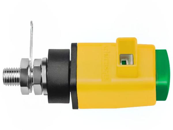 Зажим лабораторный, желто-зеленый, 300ВDC, 16А, винтами, никель