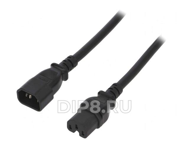Кабель, IEC C14 "папа", IEC C15 "мама", 1,8м, черный, ПВХ, 3x14AWG