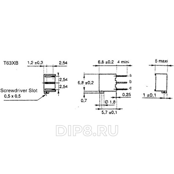 Монтажный потенциометр T63XB102KT20 от производителя VISHAY - это высококачественный многооборотный элемент с линейной характеристикой, предназначенный для точной регулировки сопротивления в электронных схемах. Сопротивление устройства составляет 1 кОм с допустимой погрешностью ±10%. Потенциометр оснащен металлокерамической дорожкой и рассчитан на монтаж THT с шагом выводов 2,5x2,5 мм. Температурный коэффициент составляет 100 ppm/°C, что обеспечивает стабильность параметров при колебаниях температуры от -55°C до 155°C. Максимальное рабочее напряжение достигает 250 В DC, а мощность - 0,25 Вт. Габариты устройства - 6,8x6,8x5 мм. Используйте T63XB102KT20 для надежной и точной настройки ваших устройств.