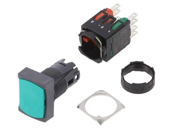 Переключатель: кнопочный, Фикс.пол: 1, NC + NO, 16мм, зеленый