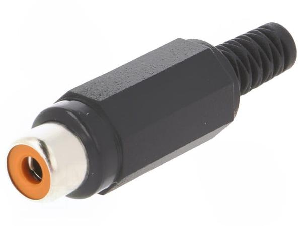 Вилка; RCA; "мама"; с амортизатором; прямой; пайка; никелированные