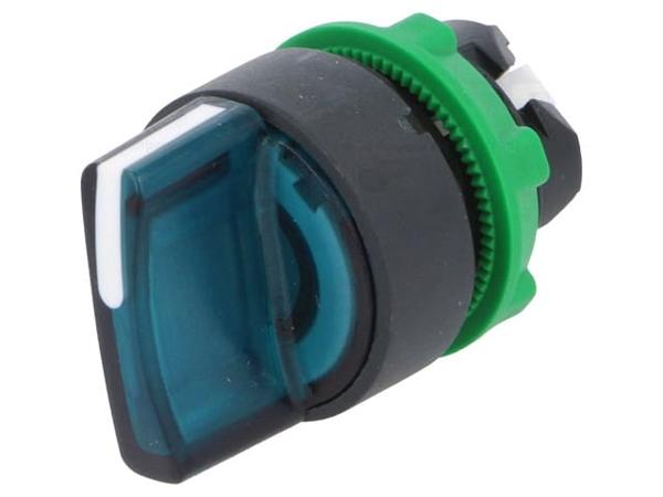 Переключатель: поворотный, Фикс.пол: 2, 22мм, зеленый, Подсвет: LED